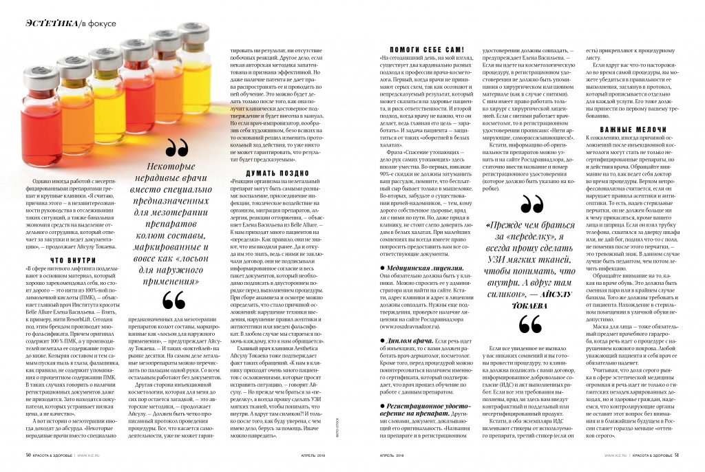 В апрельском номере журнала "Красота и здоровье" экспертом выступила наш главный врач Елена Васильева.