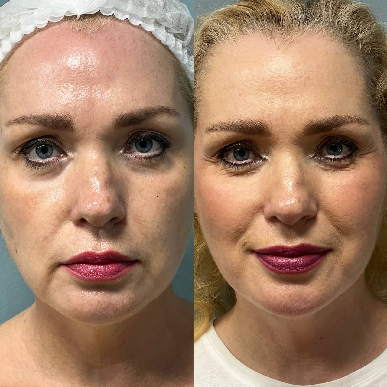 Процедура способствует улучшению овала лица, уменьшению выраженности птоза тканей, повышению плотности и упругости кожи. Эффект заметен сразу после проведения процедуры и усиливается в течение последующих недель за счёт стимуляции неоколлагенеза.