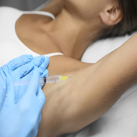 Ботулотоксин в подмышки эффективнее всего справляется с локальным гипергидрозом. Препарат целенаправленно действует на потовые железы. Еще есть лазерные технологии, но уколы ботокса — более щадящее и комфортное решение.